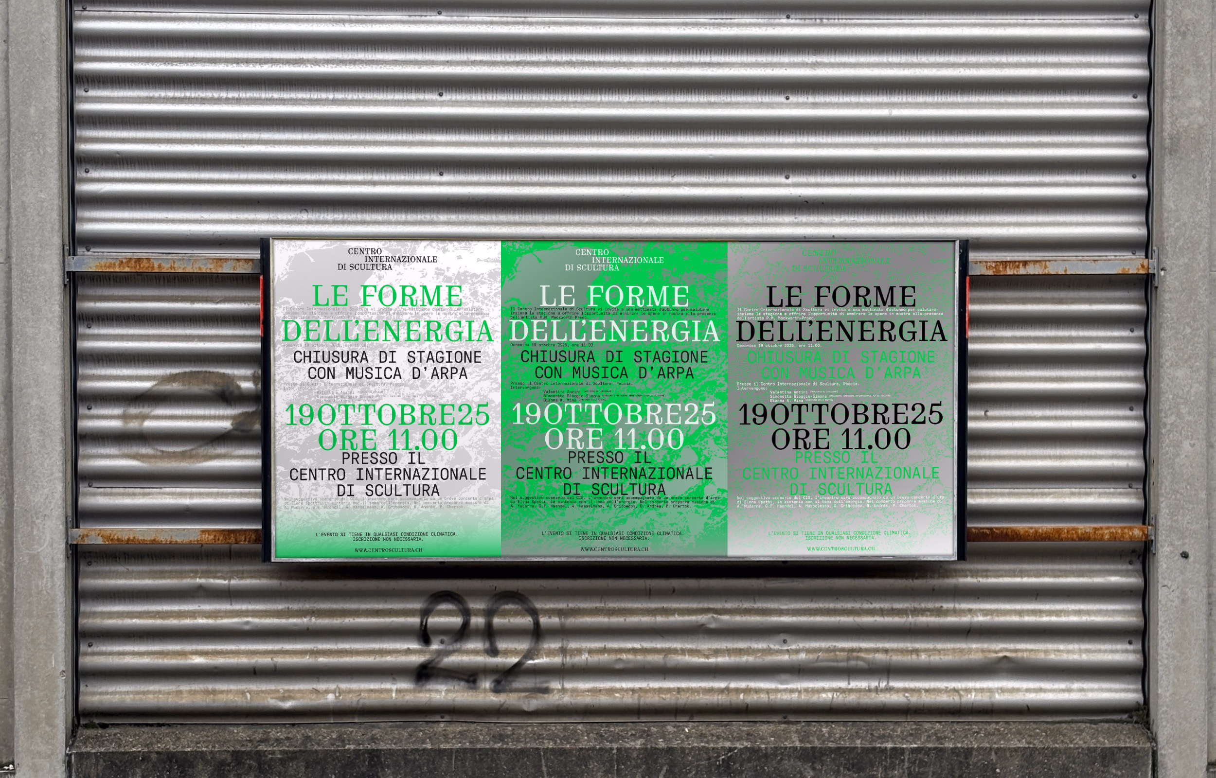 The CIS visual identity is rooted in the materiality of marble, reworked as texture and paired with typography in a contemporary brutalist style that echoes Center architecture and materials.
